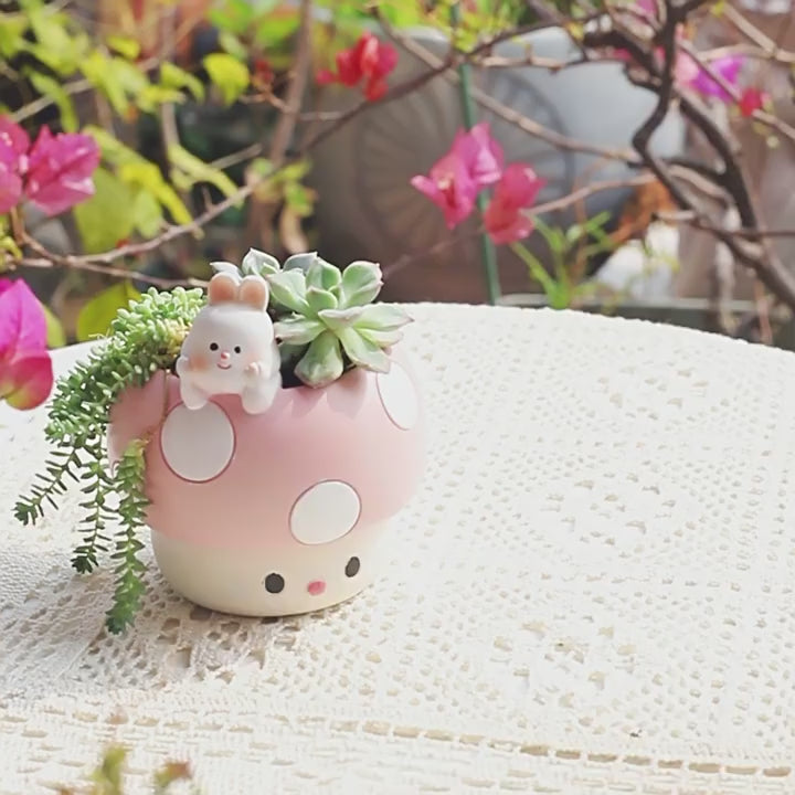 Little Forest Den Mushroom House Planter - Whimsical Resin Pet Pot for Succulents & Cacti, Adorable Desk Decor